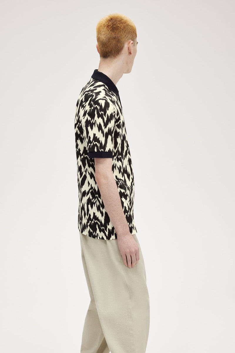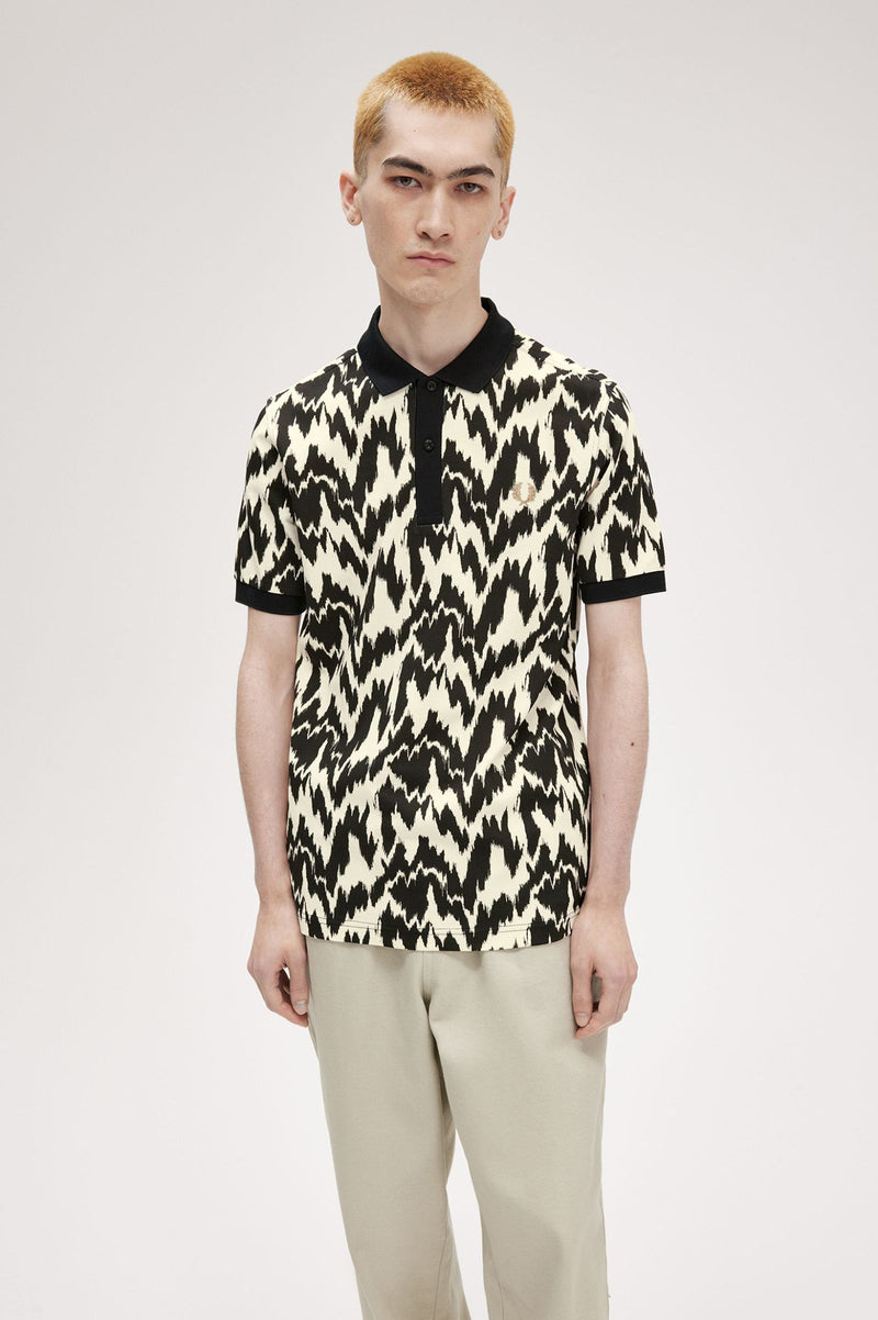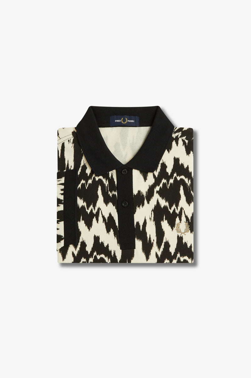 Blending in with the pack has never really been our bag. In a raucous high-contrast print, drawn with an element of glitchy distortion, our animal print polo shirt is a true conversation piece for your next big night out. This version adopts our Ecru colourway, a shade inspired by off-white sporting kit, and finished with the embroidered Laurel Wreath in metallised gold yarn. Go wild for the night.