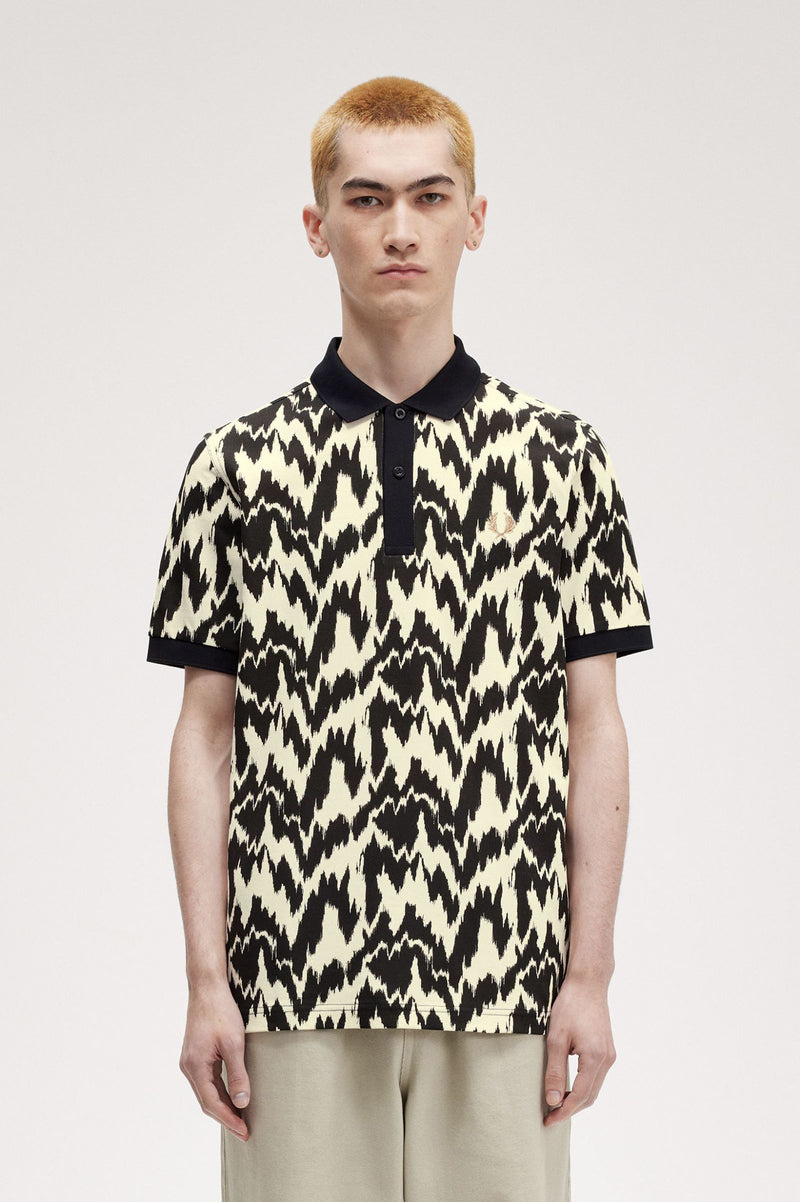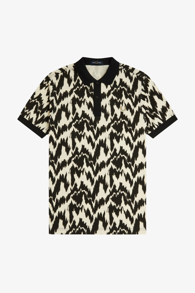 Cotton piqué fabric / Regular fit / Two button placket / All over water based print / Laurel Wreath embroidered logo on the left hand chest