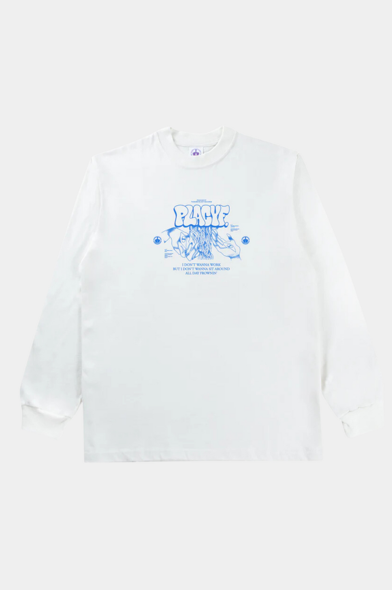 Unisex long sleeve crewneck t-shirt with plastisol print in front. Made with 100% cotton. Regular fit. Pre washed to minimize shrinkage. View size chart for detailed measurement guide. This t-shirt represent what most of us think on the daily, the idea of going to work is always a drag but at the same time we loath it when we do nothing. There's beauty in that. Inspired by various artist works, translated into our own version. Designed by Pleasure Palace Publication.