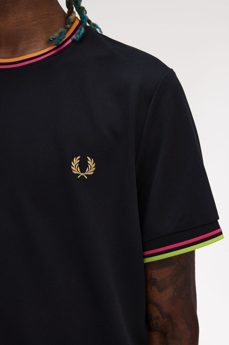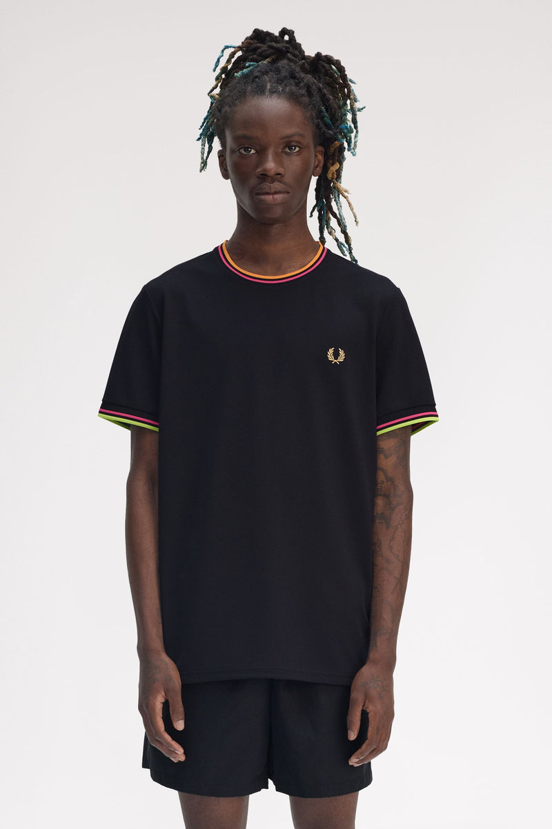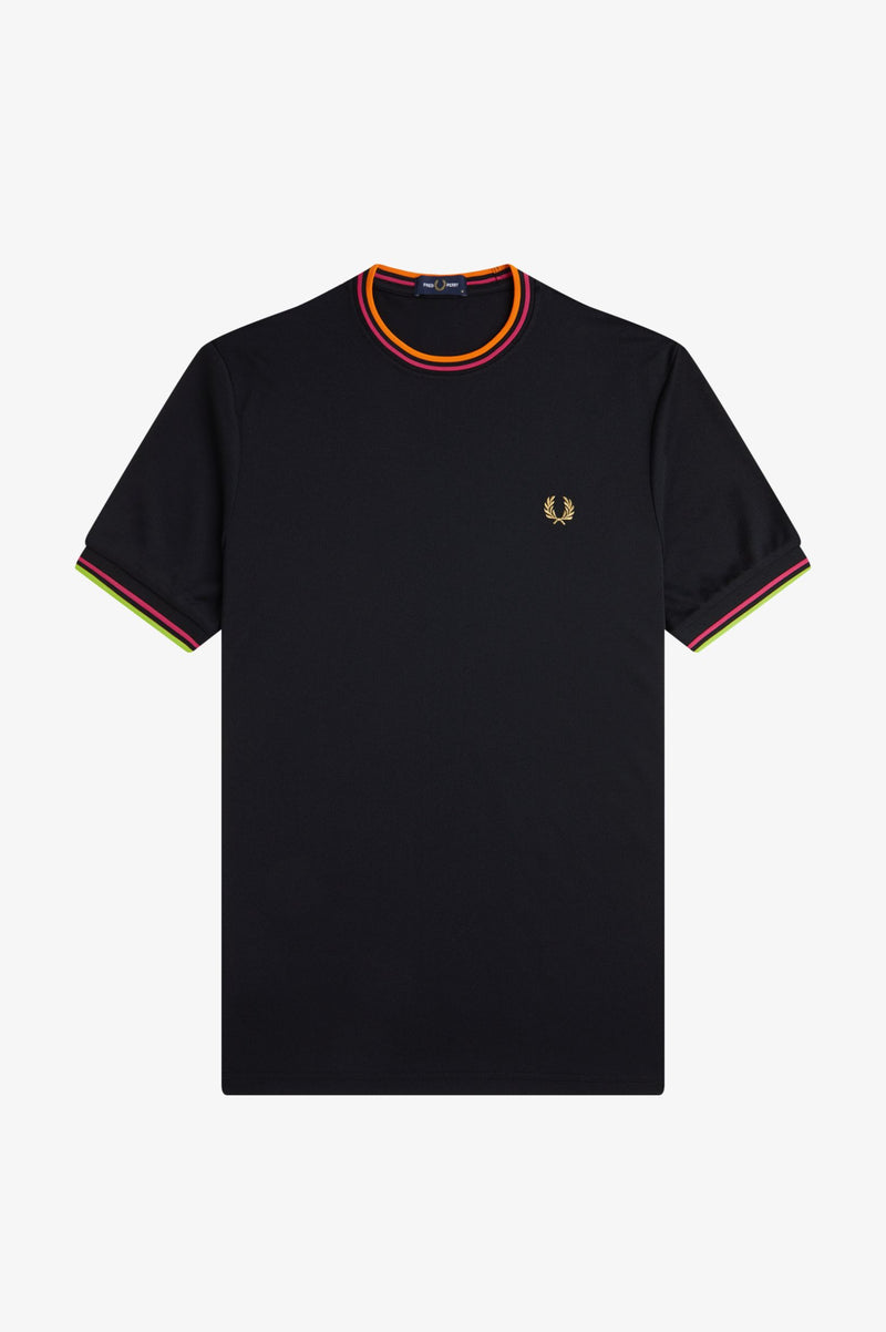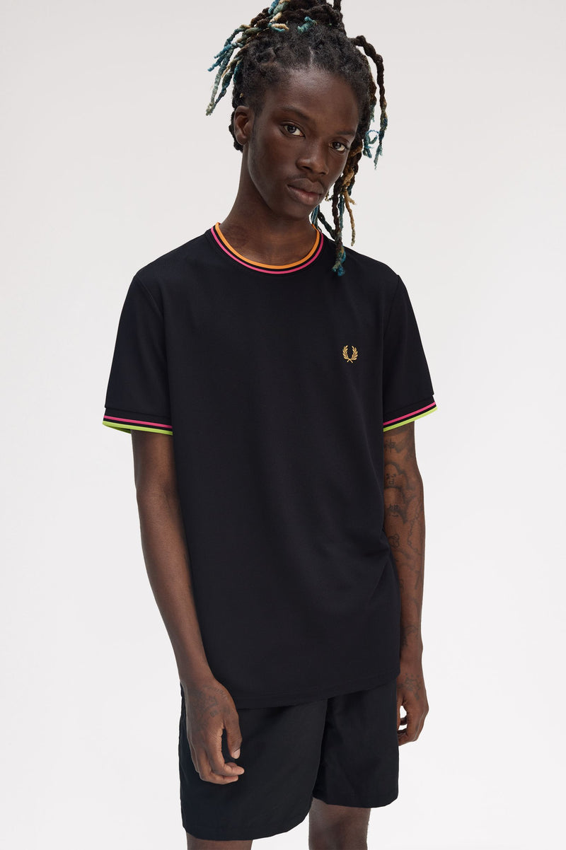 A crew neck T-shirt with twin tipping to the collar and cuffs.
