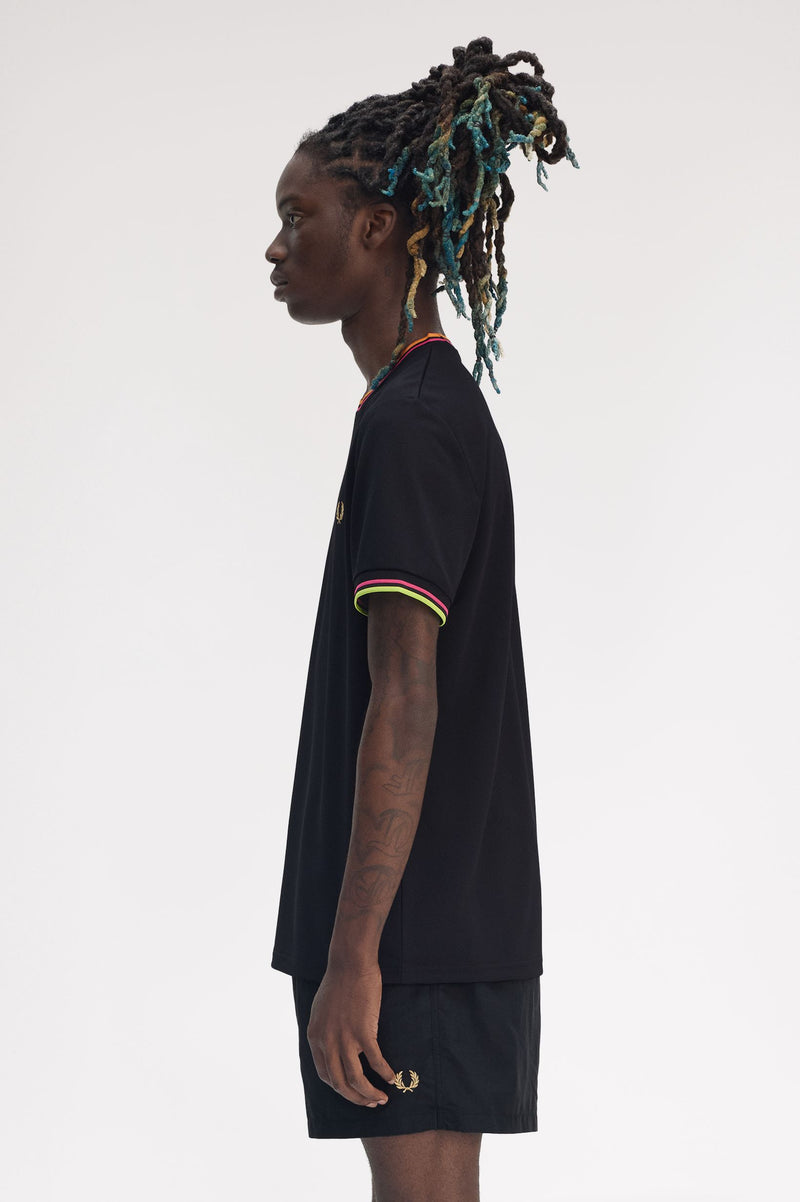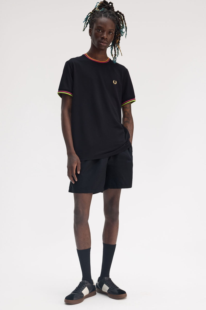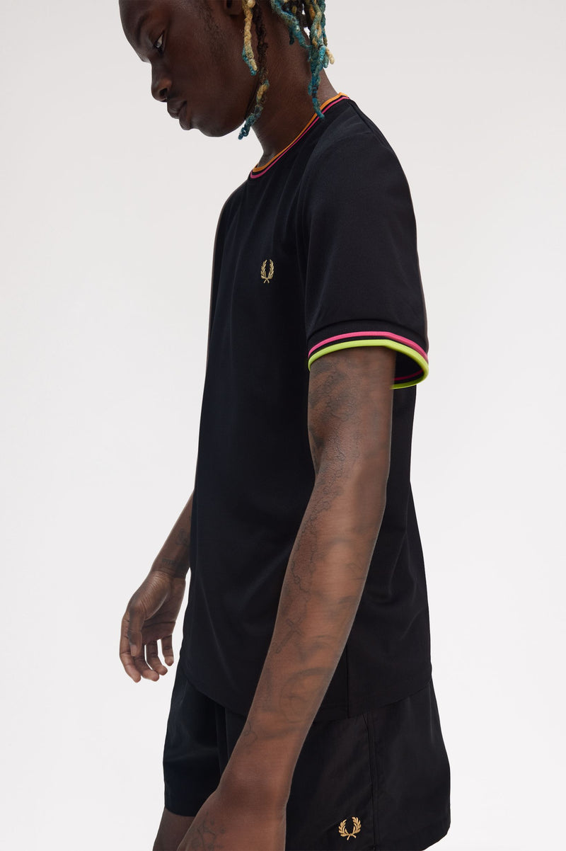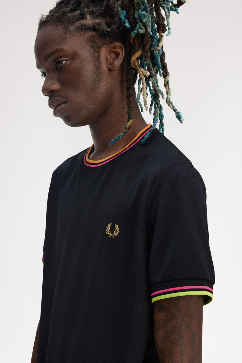 A crew neck T-shirt with twin tipping to the collar and cuffs.
