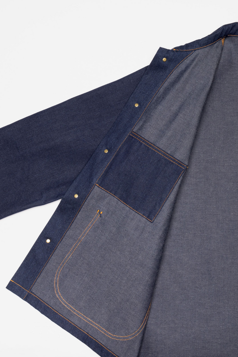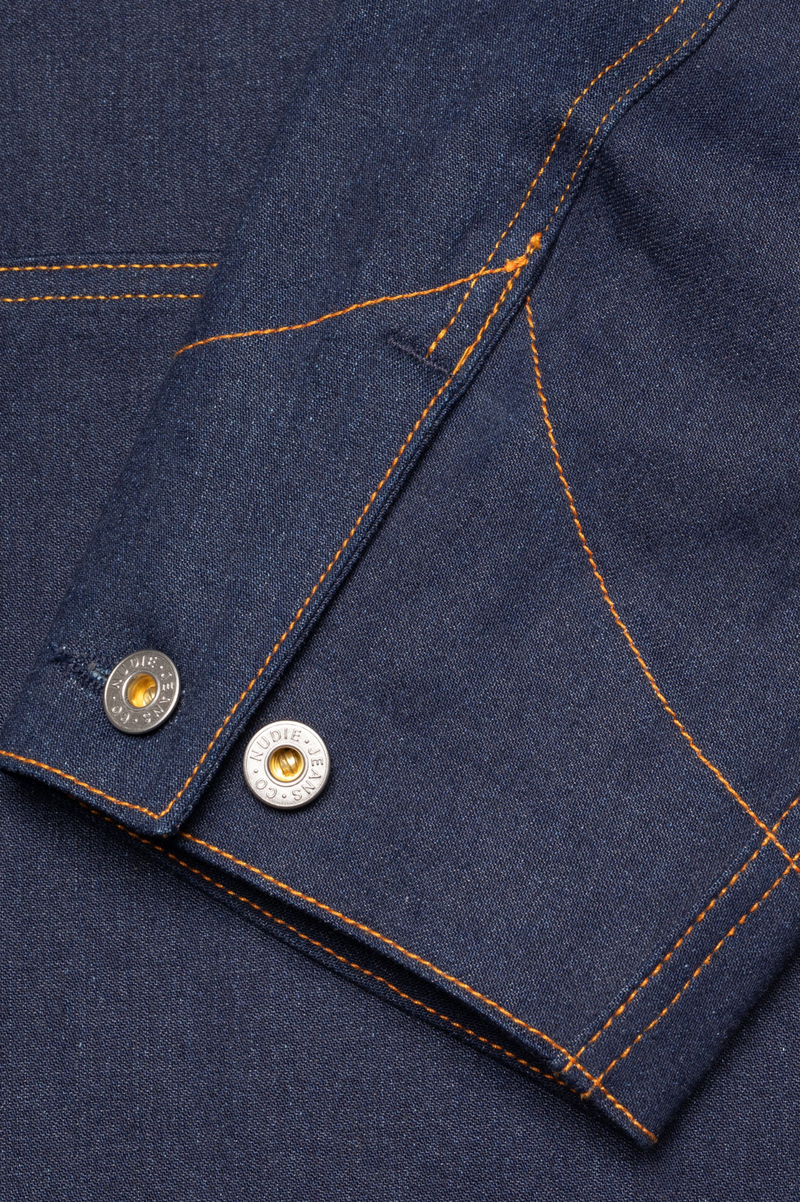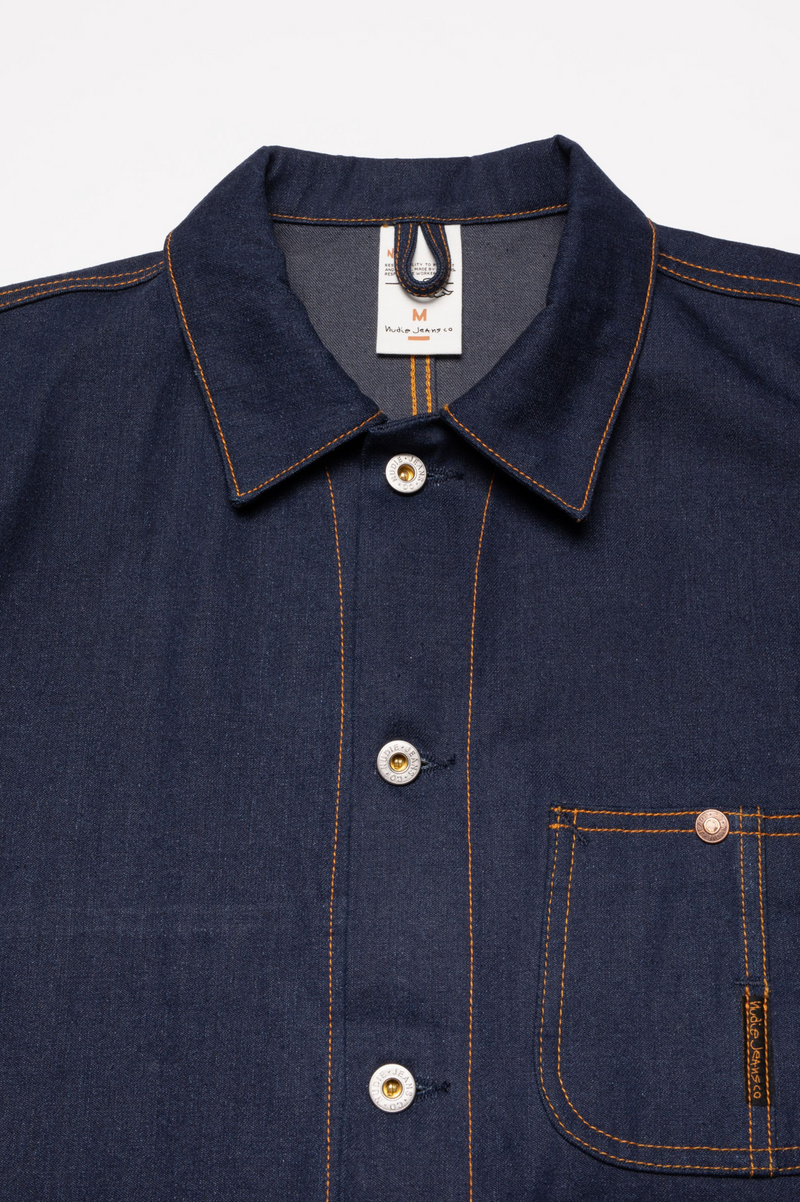 The Howie jacket features a generous fit, embodying the essence of a true work jacket. Crafted from our "Painter Denim," a deeply saturated pure indigo 2/1 denim, this jacket is detailed with Nudie Jeans' signature orange thread and stainless steel "Donut" buttons. The result is a meticulously crafted, vintage-inspired denim with an expertly tailored fit, brought to life by the bold contrast of our signature orange thread. A thoughtful reinterpretation of traditional workwear, blending past influences with Nudie Jeans' aesthetic.
