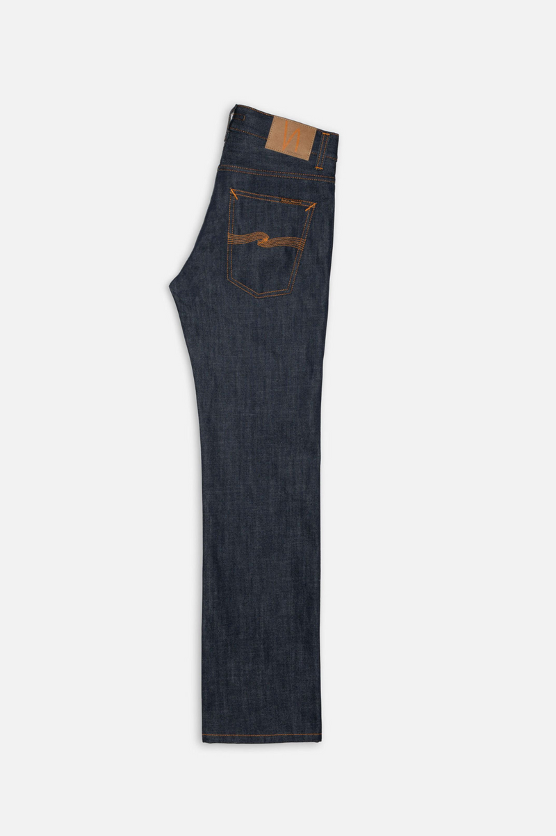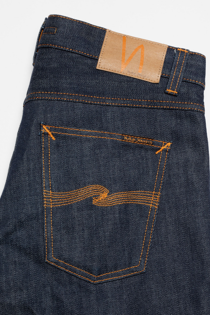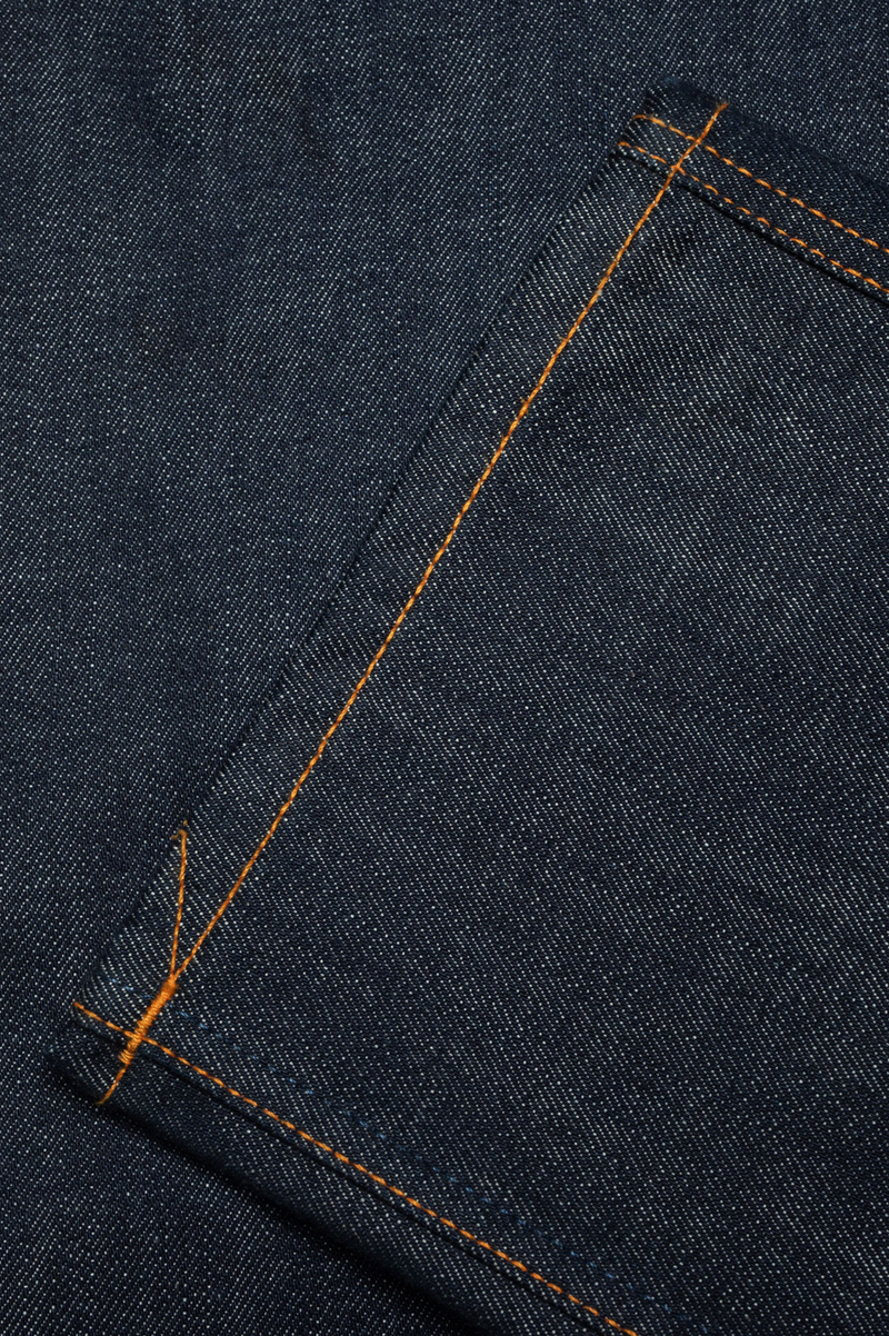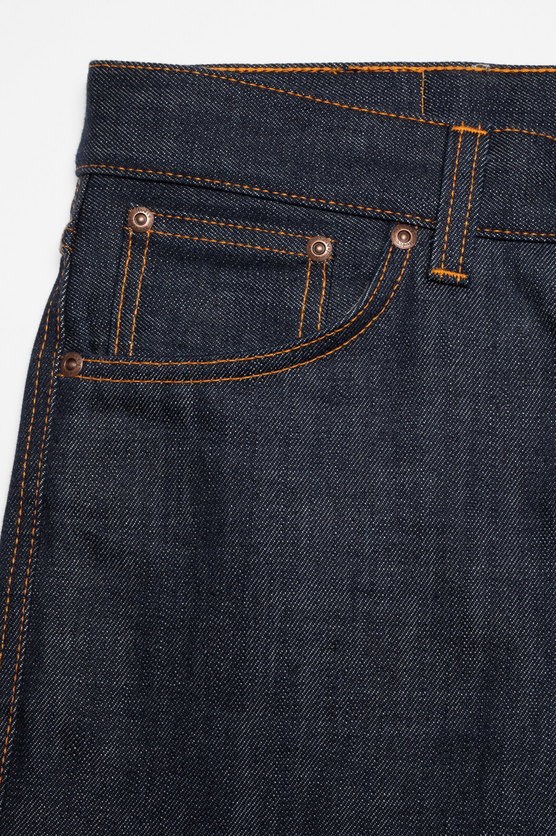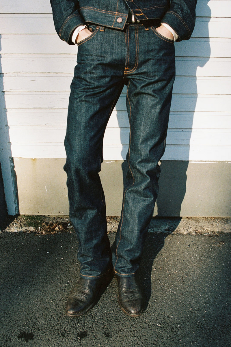 The Slim Jim, Nudie Jeans' classic slim-fit style with its signature twin-needle outer seam, is back. The Dry Streaky is crafted from exceptional streaky denim featuring pronounced vertical slubs of varying lengths. As the denim ages with wear, its striking texture becomes more pronounced; initially, the vertical slubbiness stands out, and over time, with washing, a subtle crosshatch texture emerges, creating a rich and dynamic textural journey.