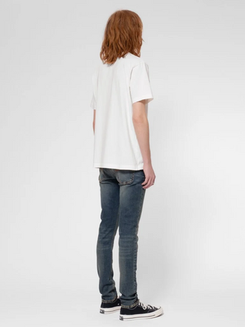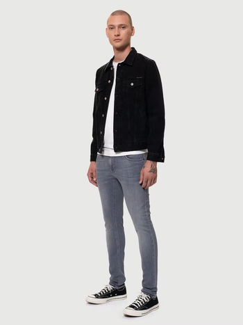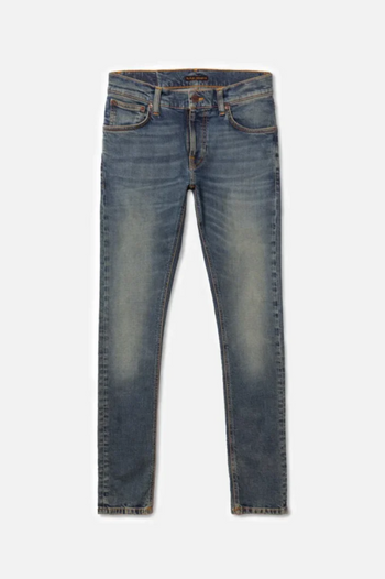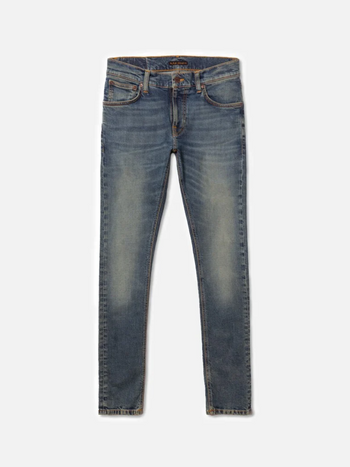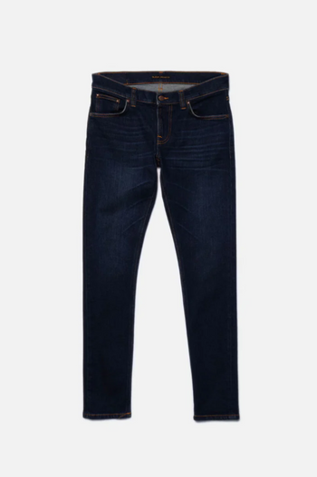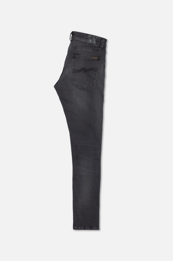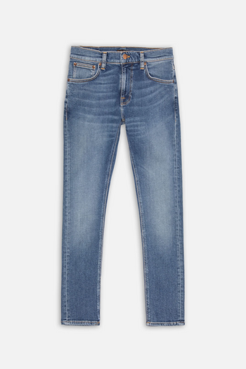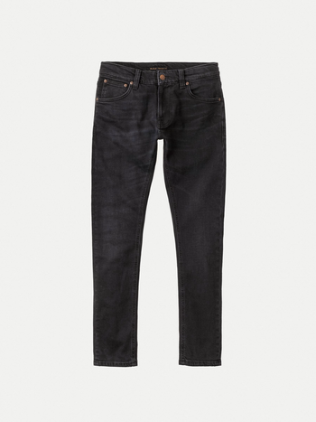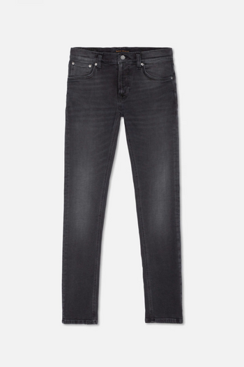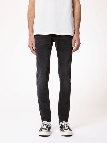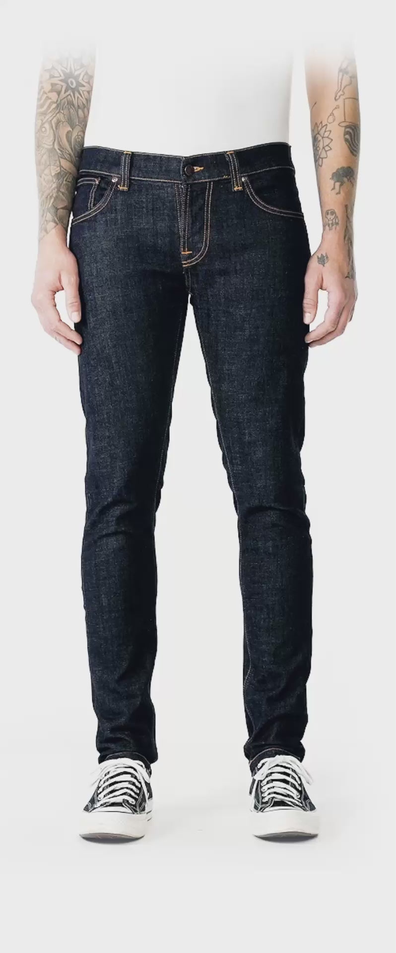 Tight Terry fits tight from the hip down to the ankle, has a low waist and zip fly. It has a tilted waist, which makes it higher at the back while not feeling high in the waist. It's made with stretch and is available in both dry, black, and washed denim options.