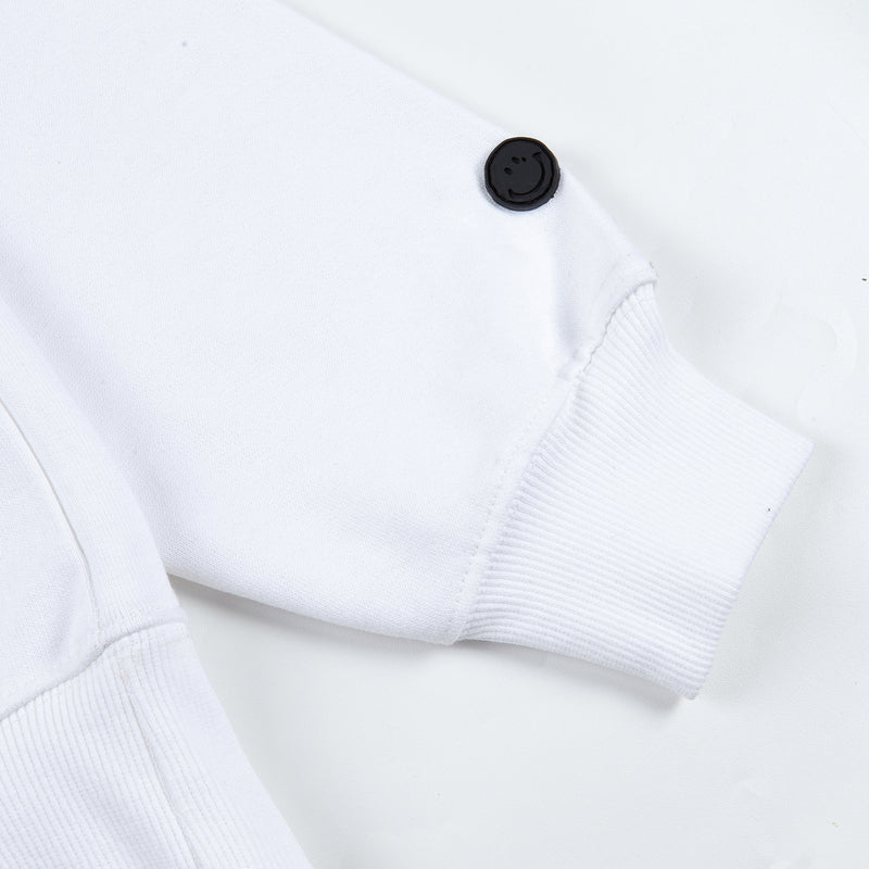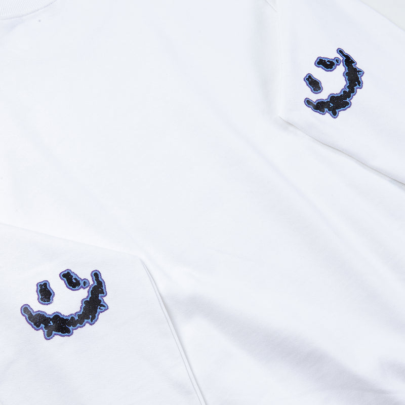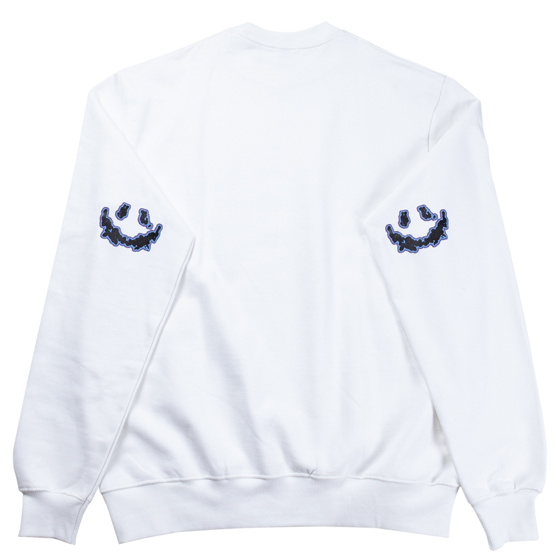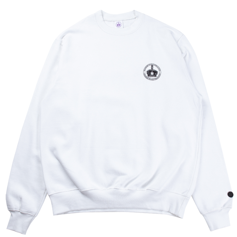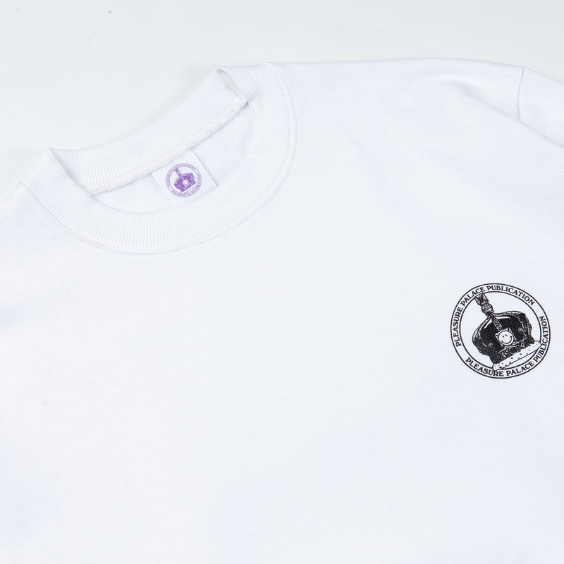 Unisex crewneck sweatshirt with plastisol prints in front and upper elbow. Made with Fleece cotton (100% cotton. 375GSM). Regular fit. Pre washed to minimize shrinkage. View size chart for detailed measurement guide. Essential piece of garment for daily wear, minimal graphic to maximize wearers preferred styling indoor or outdoor. Designed by Pleasure Palace Publication.