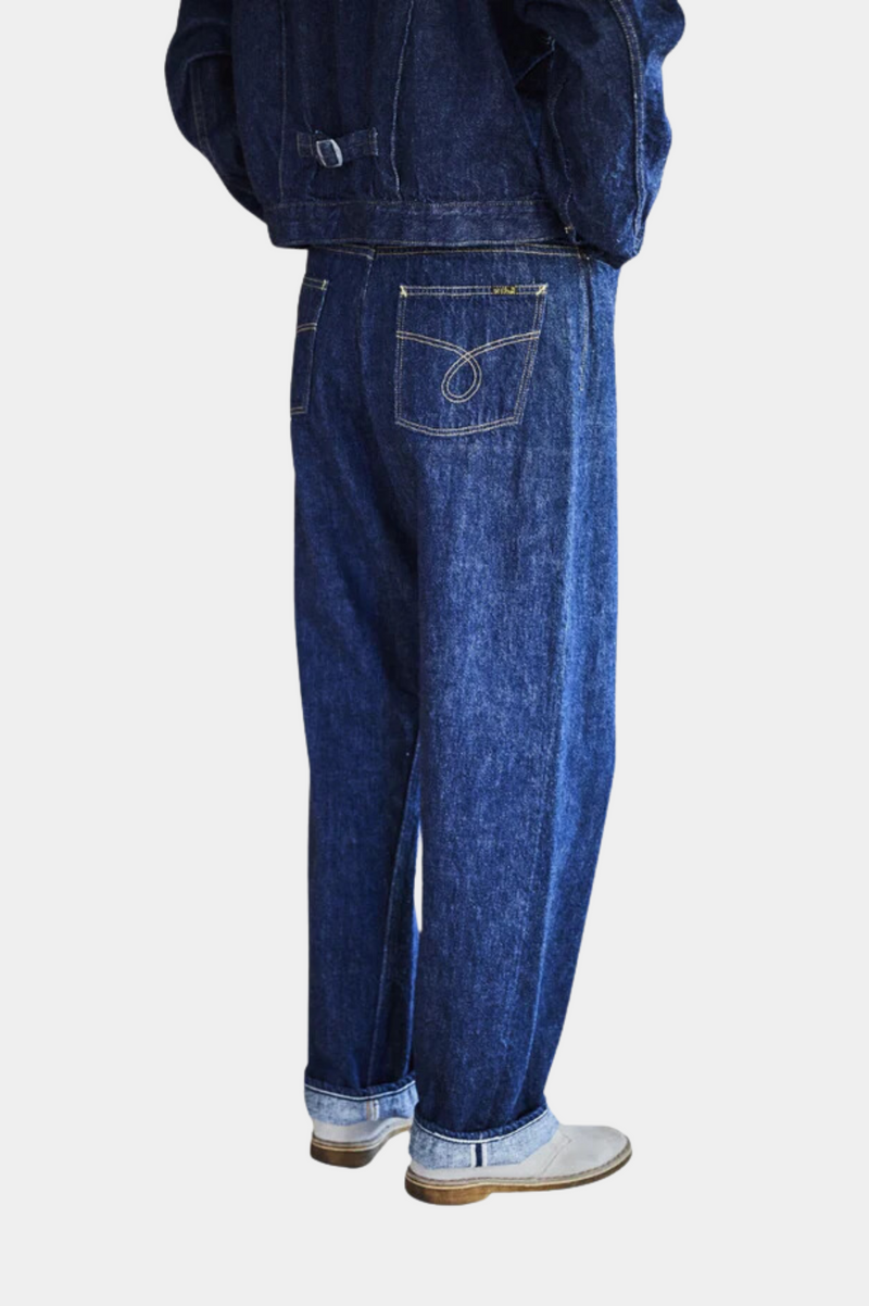 Inspired by women's jeans from the 1960s, this piece uses original lightweight selvedge denim, carefully selected from the yarn stage. The denim, woven on old-style shuttle looms, has a soft texture. The silhouette is a relaxed straight fit with a deeper rise, ensuring comfort. Over time, you can enjoy the unique changes in appearance that are characteristic of selvedge denim.