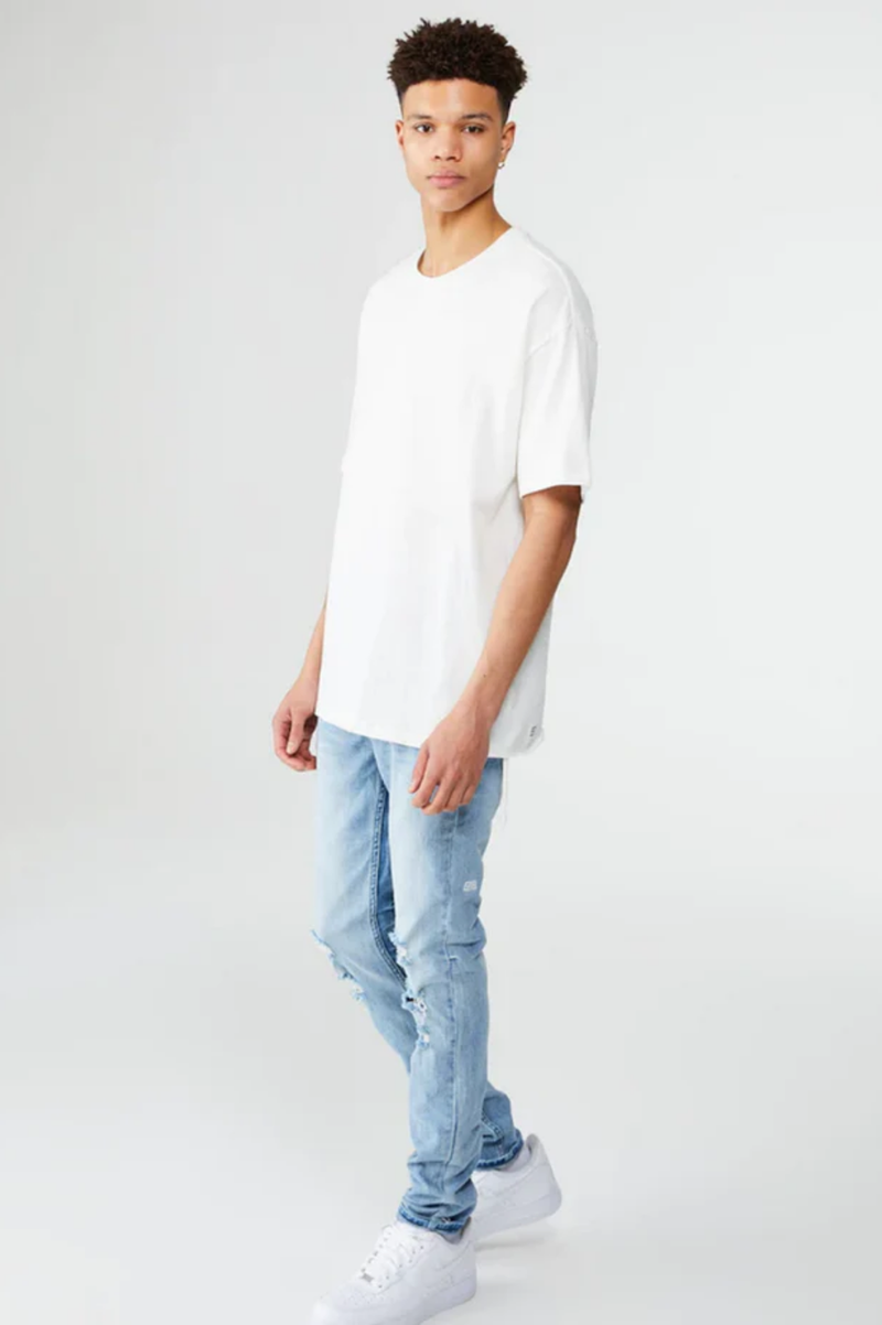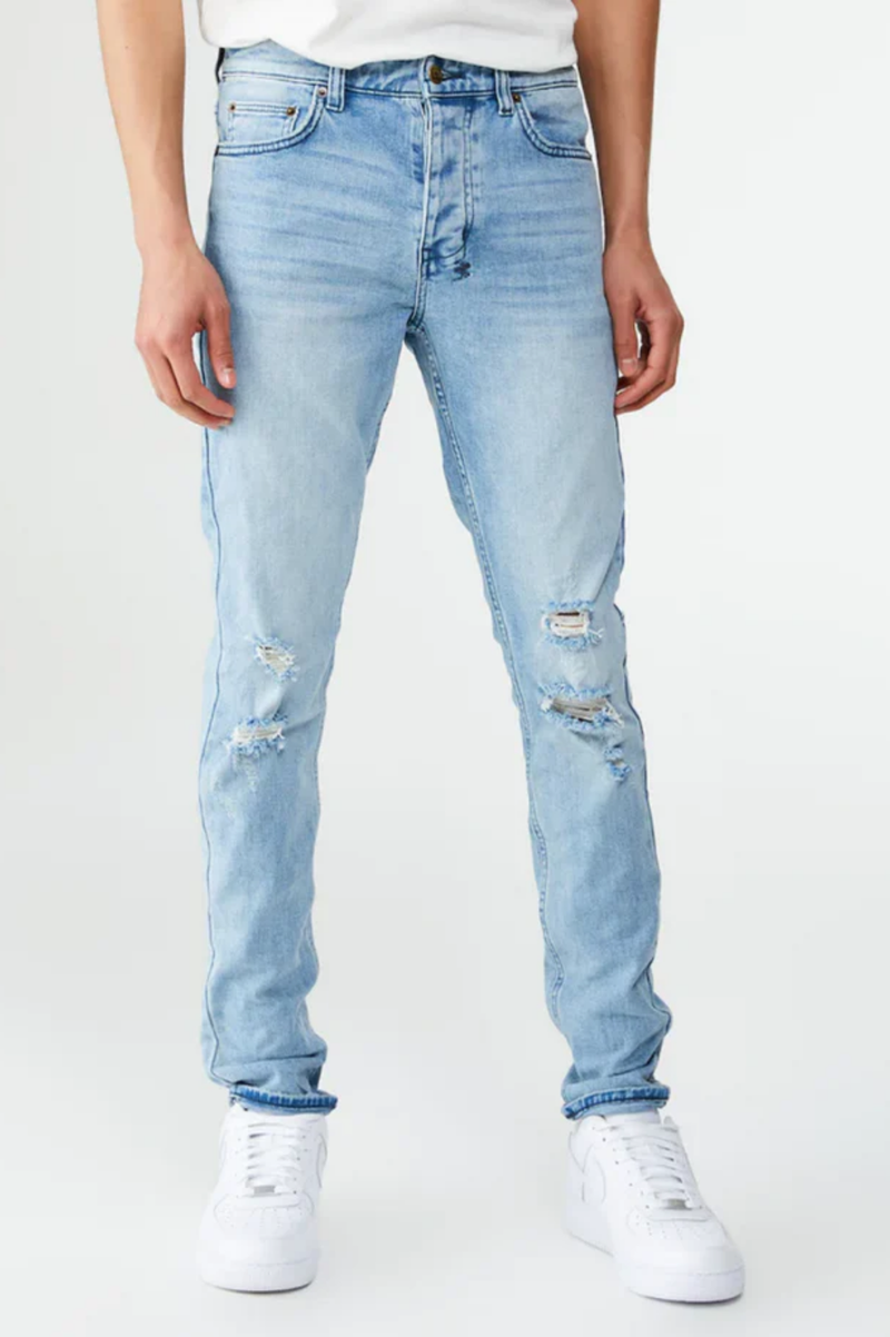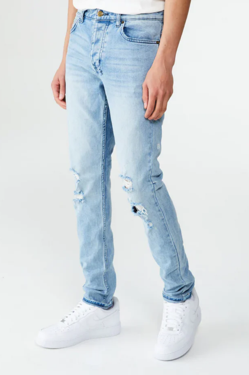 The Chitch jean is a contemporary style jean in a tapered leg, constructed in premium comfort stretch heavyweight denim. The Chitch is designed in a relaxed, longer rise, and features branded hardware, five pockets, trashing at the thigh and knee, and signature Ksubi embroidery at the reverse.