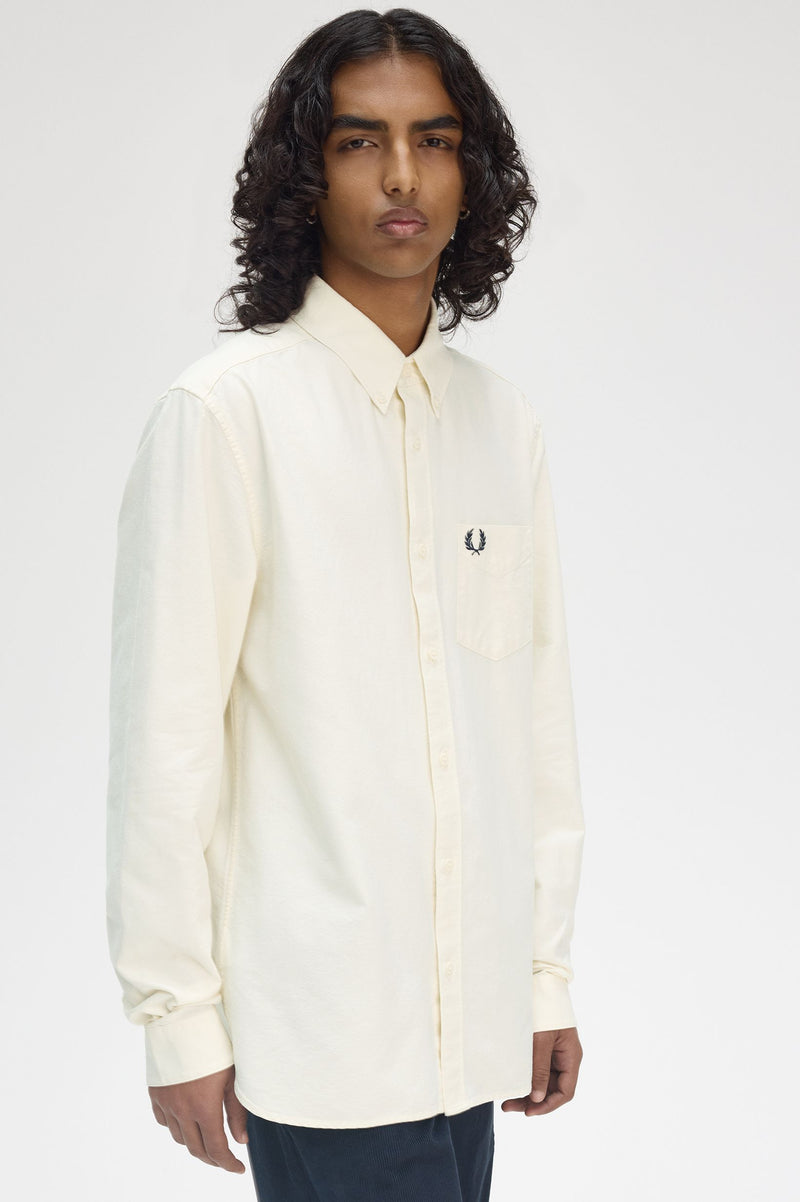 Oxford cotton fabric / Regular fit / Button down collar / Chest pocket / Laurel Wreath embroidered logo on the left hand chest