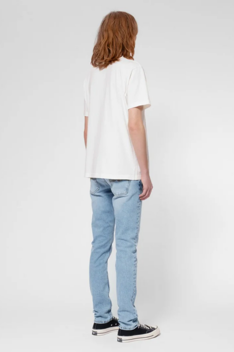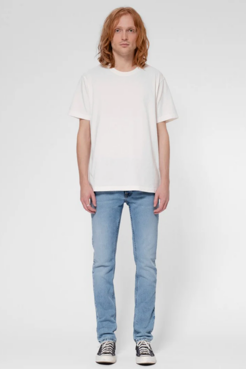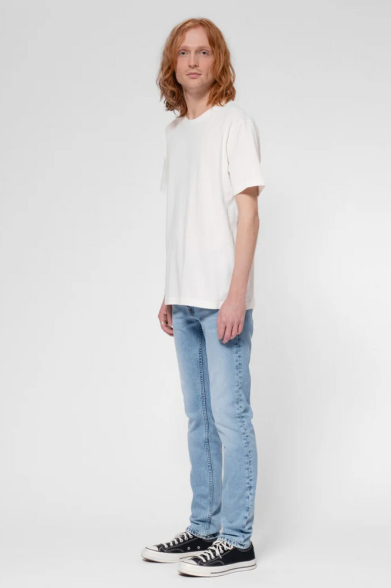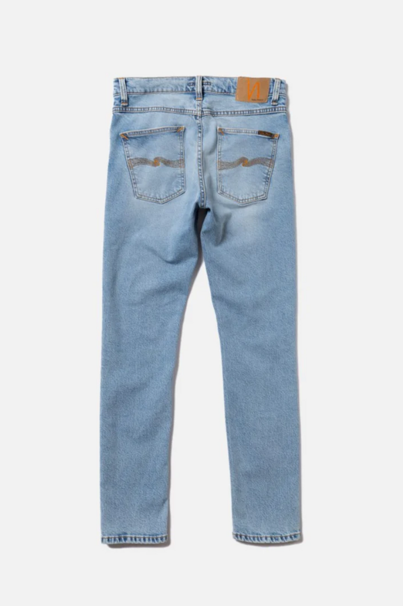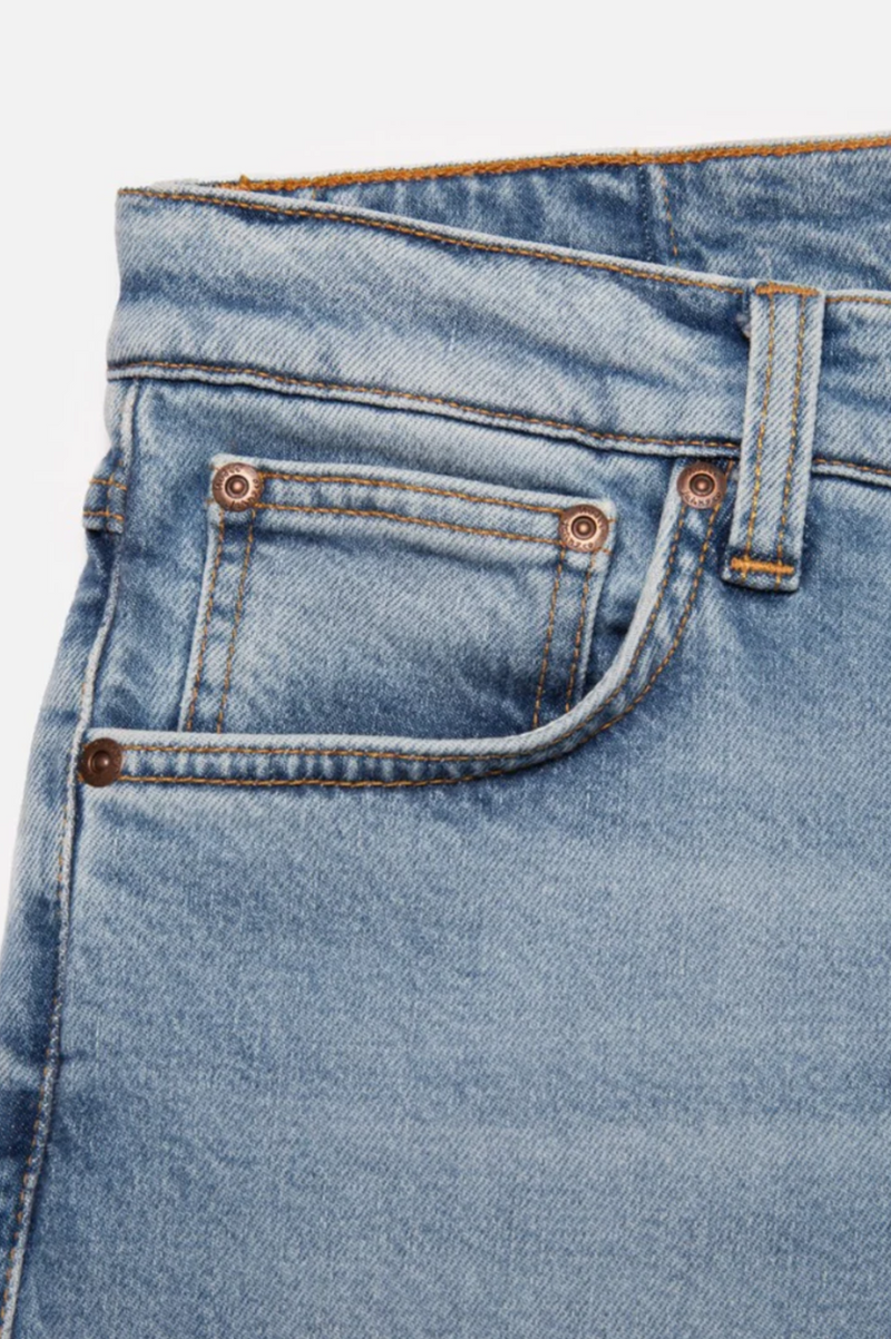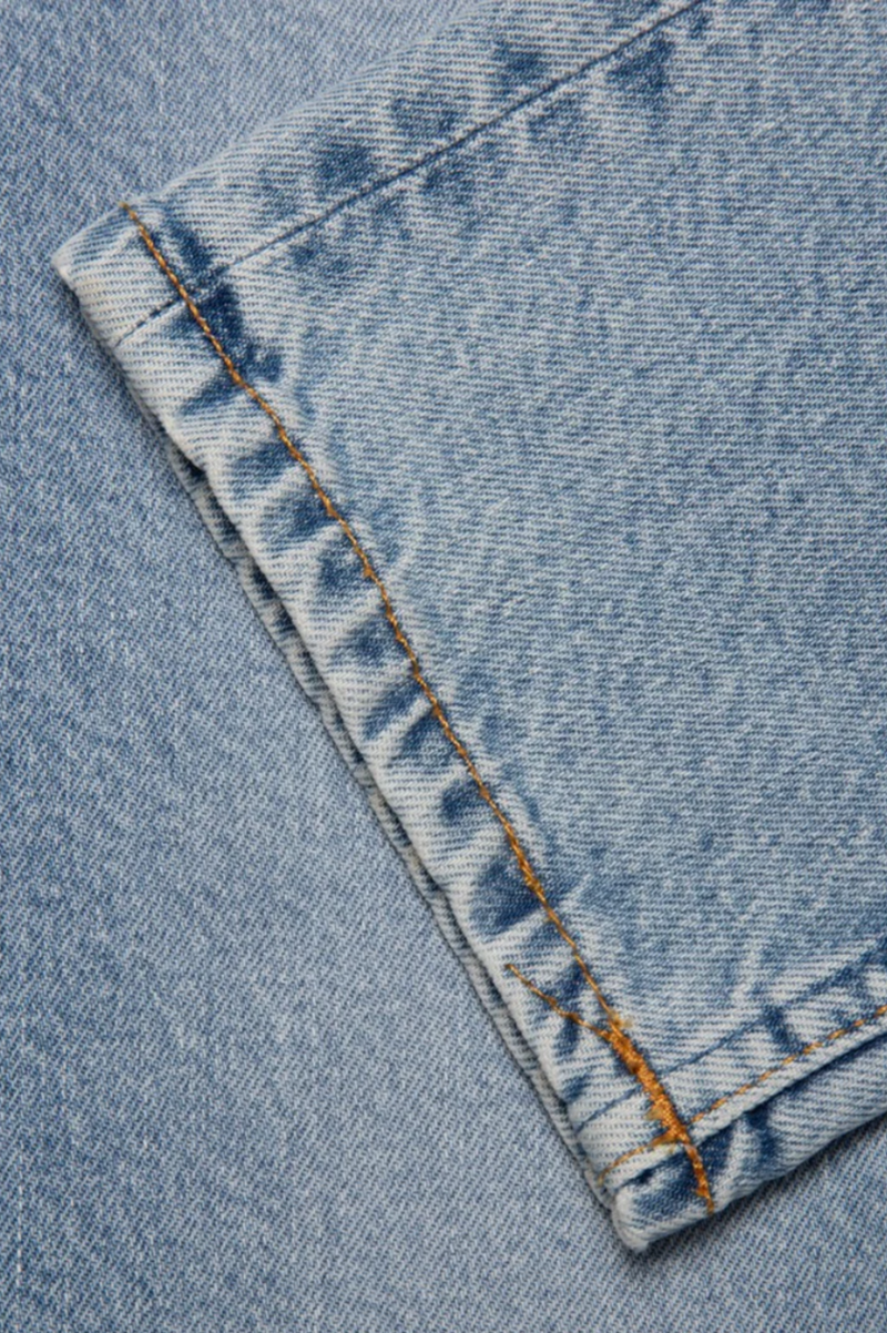 Slim-fit jeans with a tapered leg in a clean bright blue wash. Crafted from robust stretch denim with an exquisite texture, these jeans, despite their vibrant brightness, reveal a wide spectrum of indigo hues. On the textural front, they are equally impressive, displaying marbled, salt-and-pepper, and twill textures. So in short, these jeans shine brilliantly in both color and texture.