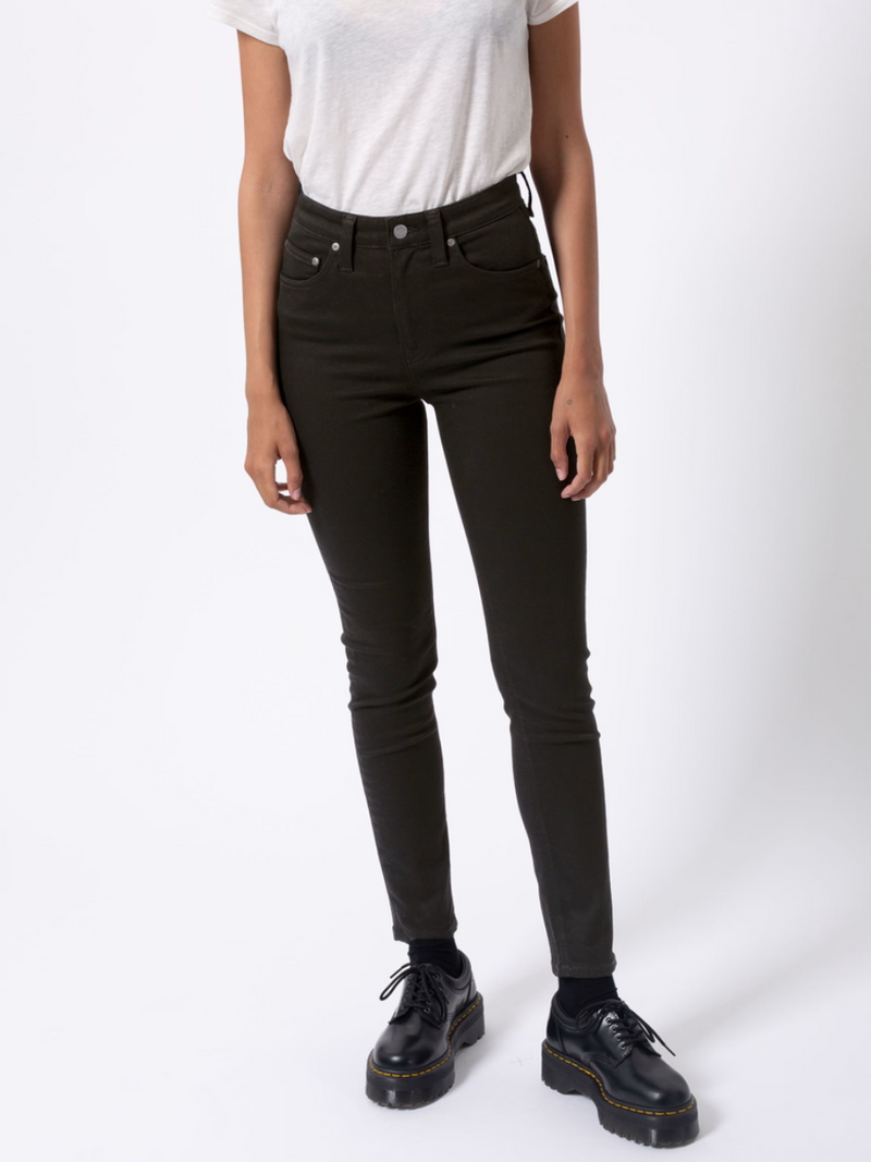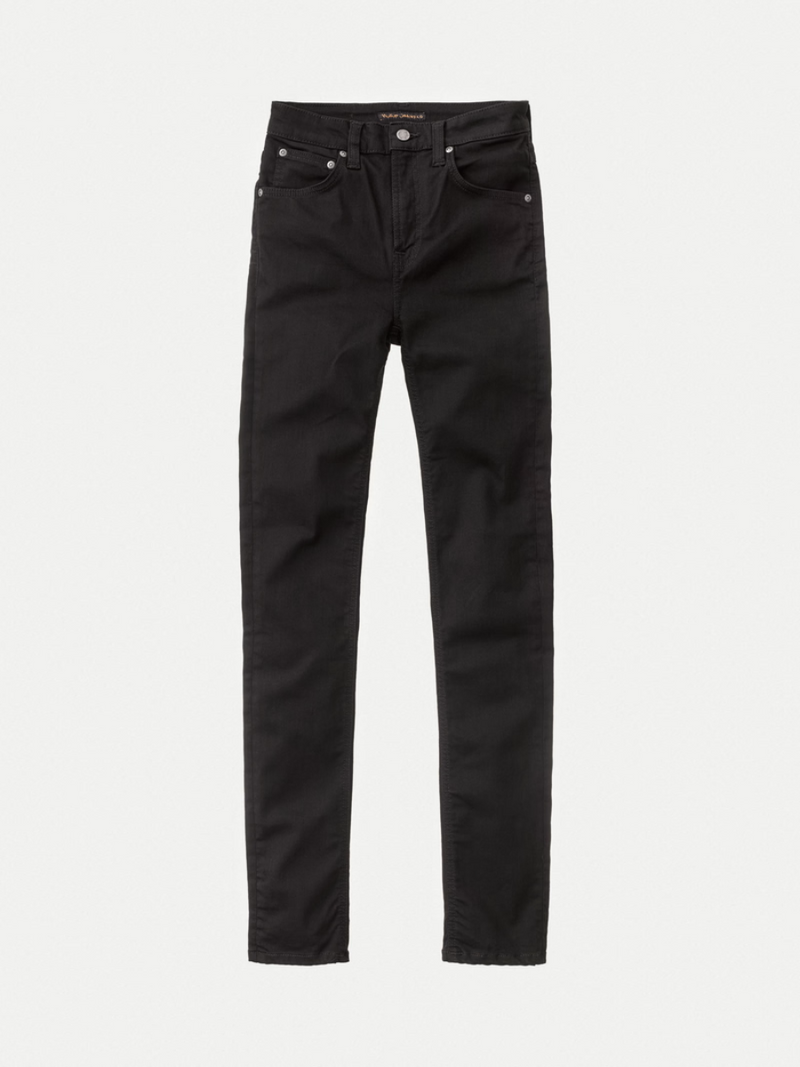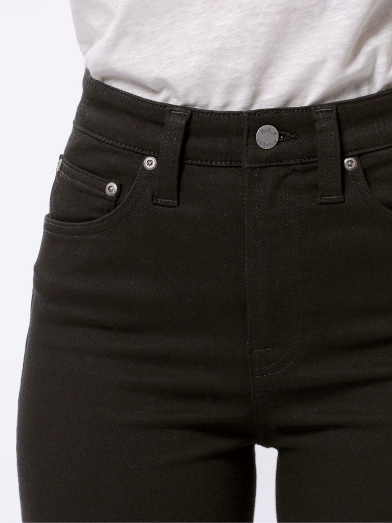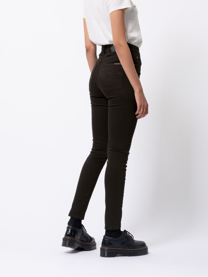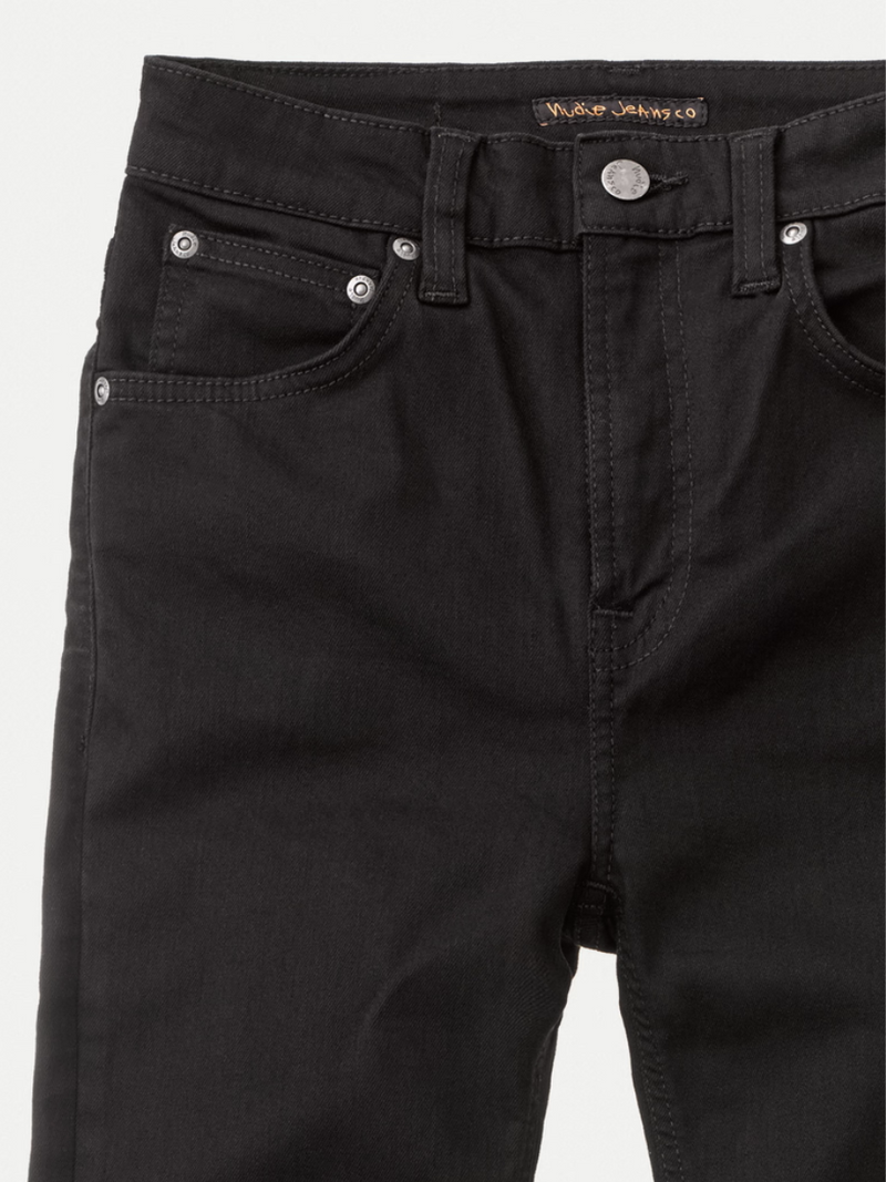 Pitch black jeans made in super stretch denim that stays black. Our Everblack fabric is made to maintain its color for as long as possible, withstanding 40, or more washes without any significant loss of color. To optimize the denim for the fit, these jeans have been rinsed, making the jeans stretchy and soft. If you are looking for a pair of pitch-black jeans that do not fade this is the way to go. Keen on knowing what differentiates Everblack from other black denim? Normally, when denim is dyed part of the dye will absorb in the cotton fibers while the rest remains bound only to the surface of the yarns. This is what gives denim its aging property that in many cases is sought after. However, when it comes to black jeans this is not always the case which is why we developed the Everblack denim. The technical difference between Everblack and regular black denim is that it utilizes a method and type of dyestuff that allows improved absorption as well as a stronger fixation. This results in denim with a significantly greater colorfastness, which does not fade with wearing and washing.