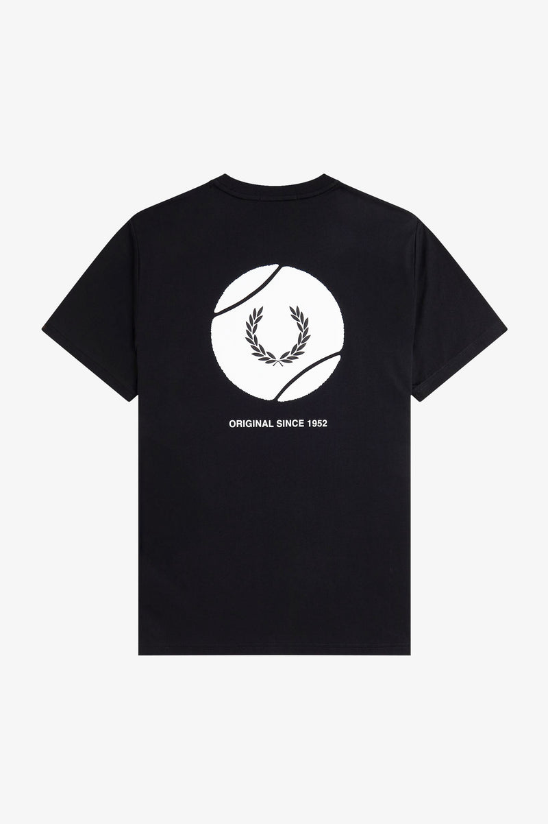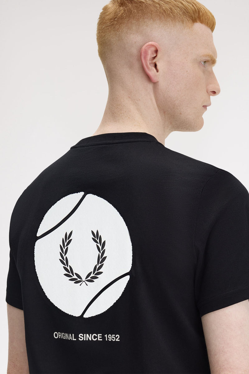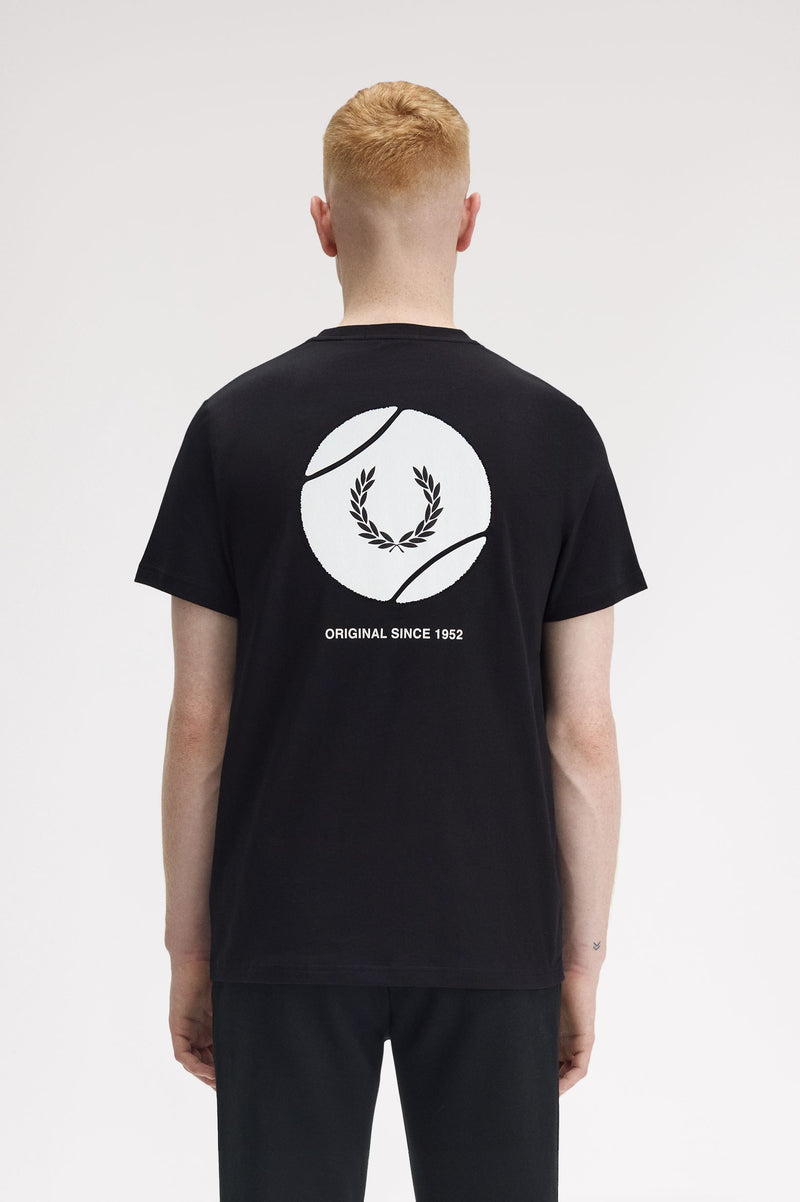 A cotton T-shirt with a puff print tennis ball graphic to the centre back.