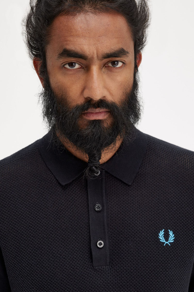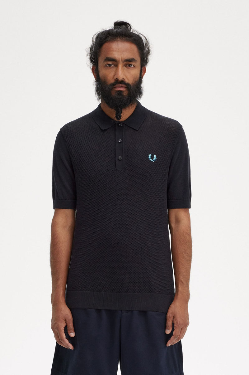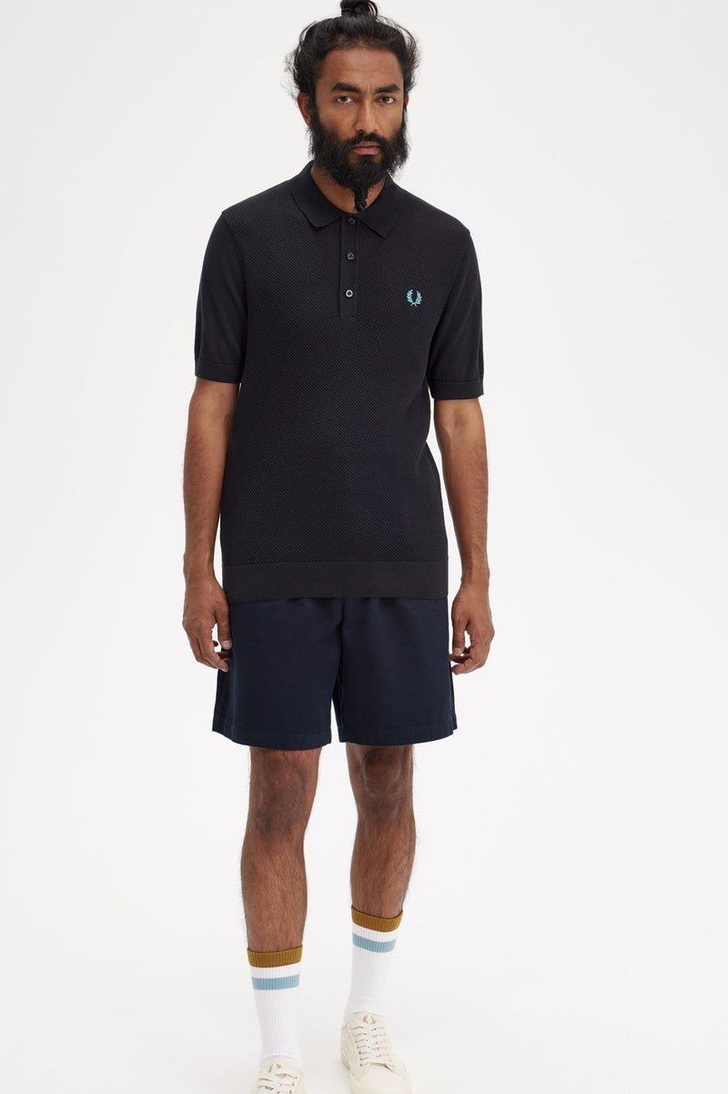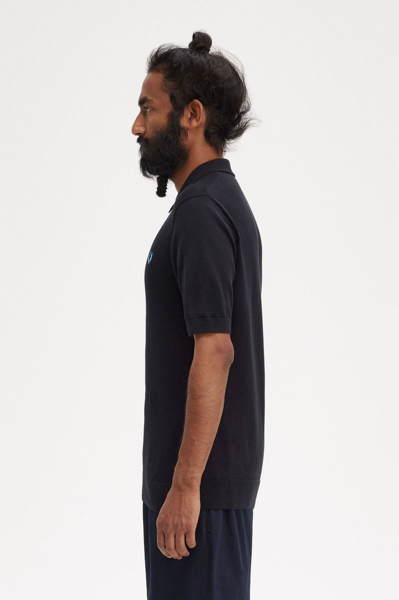 Inspired by the open knits of Fred's summer wardrobe, our knitted shirt has a breezy piqué texture, inspired by our signature tennis shirts. Breathable for both balmy beaches and basement venues, whatever your night has in store.