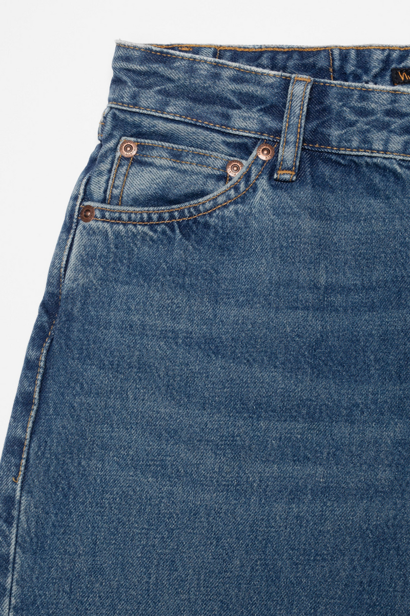 - 14.9 oz. rigid denim
